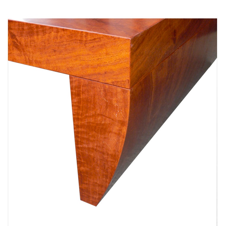Bookmatched Red Gum slab coffee table, with curved ends.